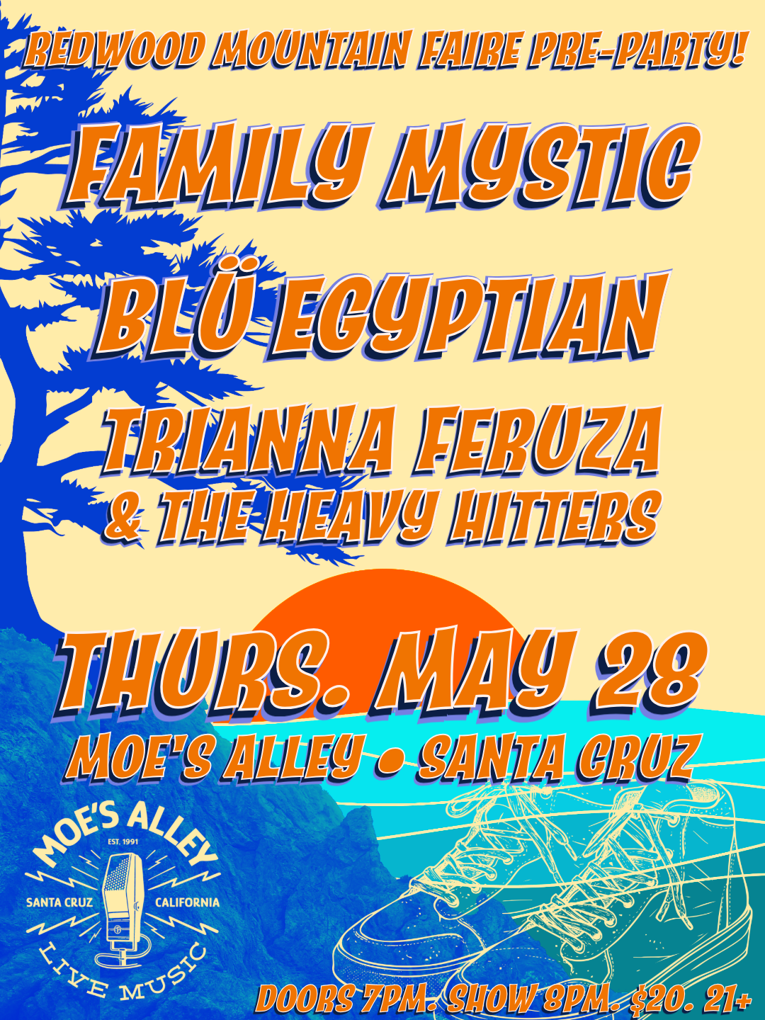 We're making our debut at Moe's Alley in Santa Cruz opening for Family Mystic on Thursday, May 28. Doors 7pm. Show 8pm. $20. 21+ Tickets