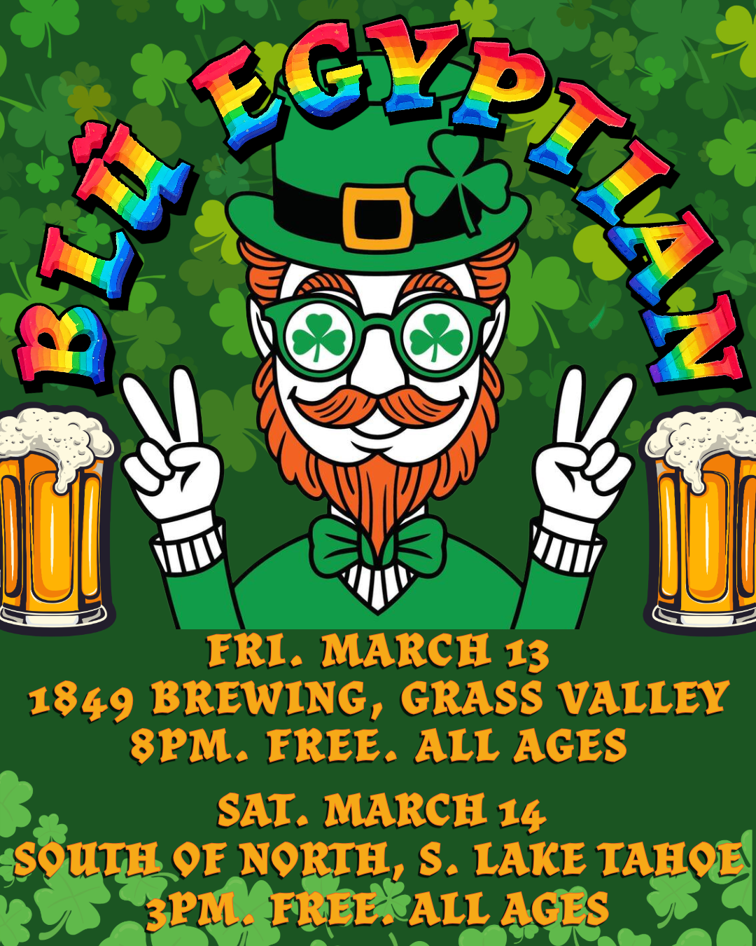 St. Patrick's Day weekend is coming up! Catch us at 1849 Brewing in Grass Valley on Friday, March 13 at 8pm and South of North Brewing in S. Lake Tahoe on Sat. March 14 from 3-6pm for a Umphrey's McGee Pre-Party. Both shows are free and all ages.